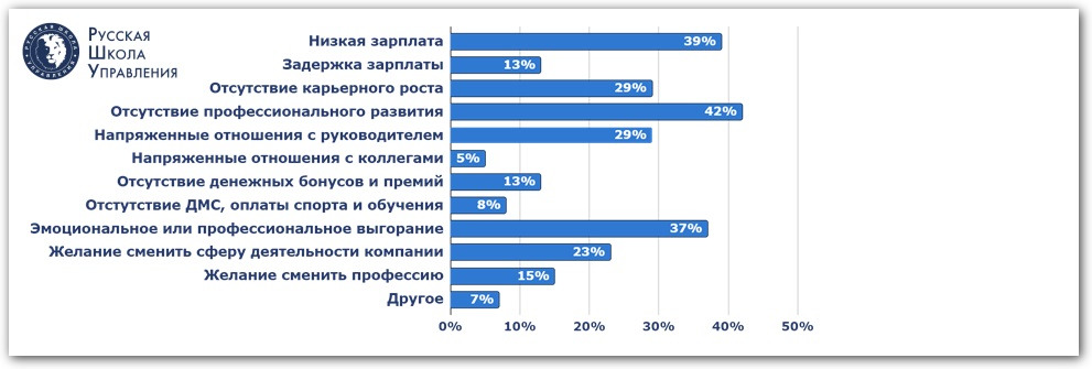 • Отсутствие профессионального развития — 42%.